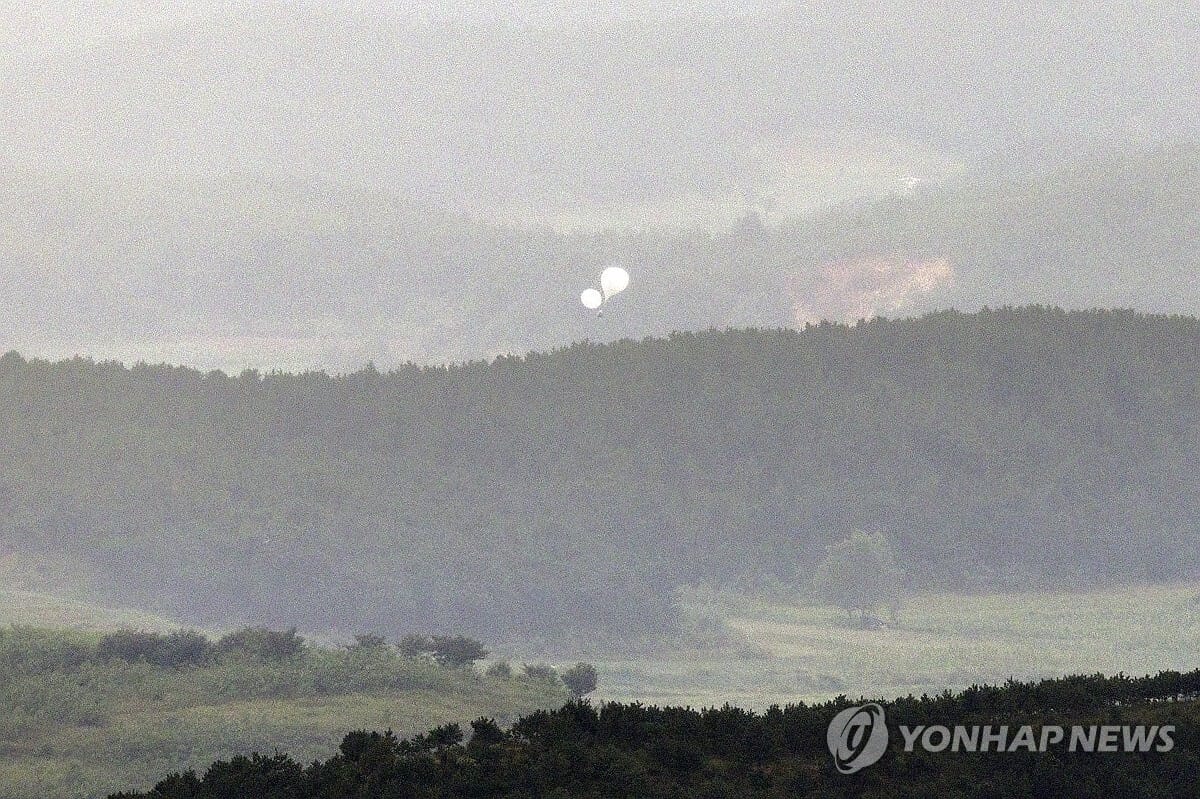 This photo, captured from an observation tower in Paju, a western border city in South Korea, shows garbage-filled balloons launched from North Korea's Kaepung County, North Hwanghae Province, heading towards South Korea on the morning of September 5, 2024.