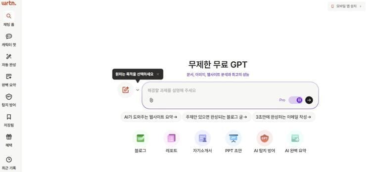 Here is the link: https://wrtn.ai/