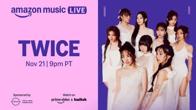TWICE will make history as the first K-pop act to perform on “Amazon Music Live,” airing on Nov. 21 at 9 p.m. (local time).